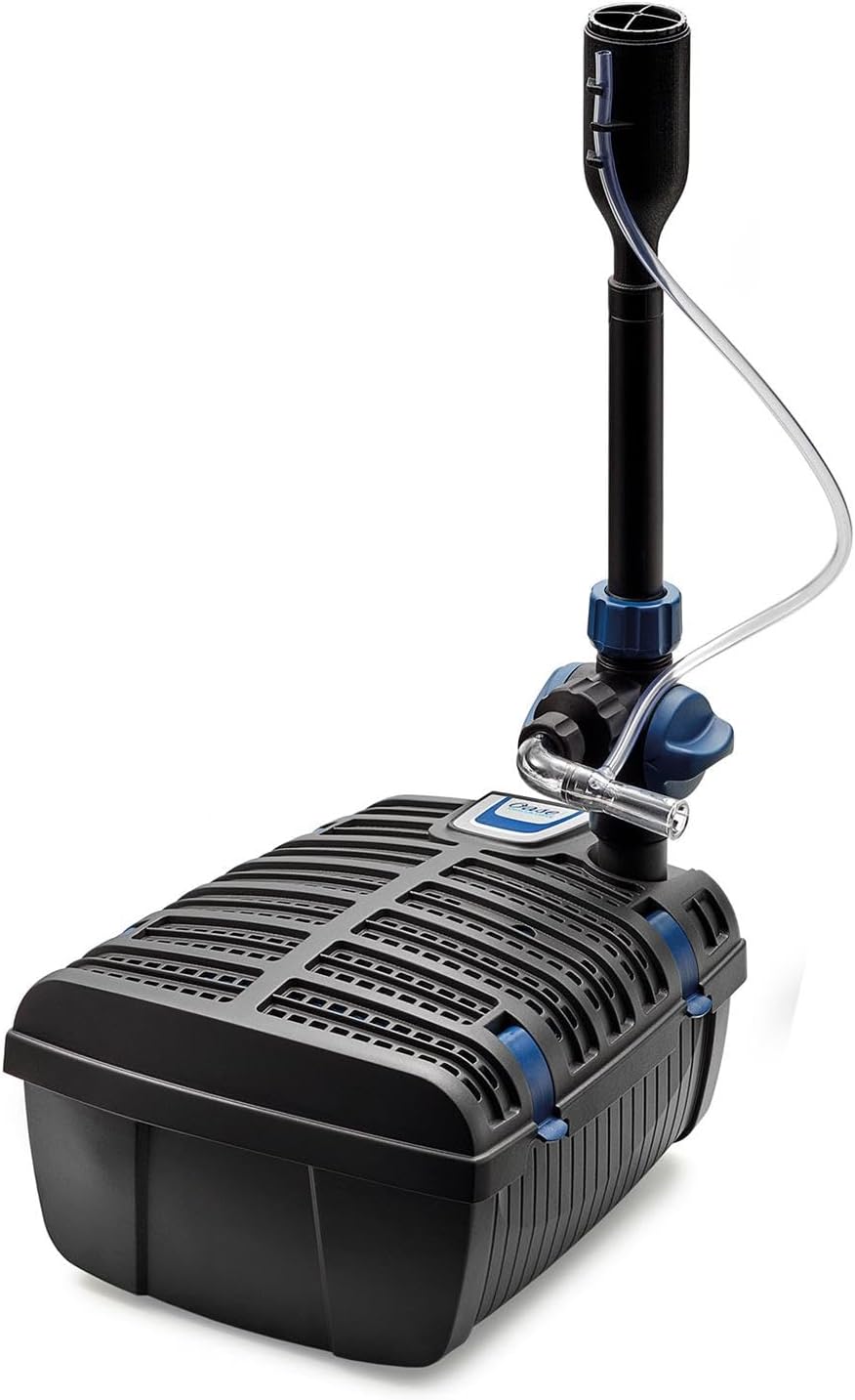 All-in-one underwater filter with integrated UVC, a fountain kit with three different nozzles, and a venturi aerator.
